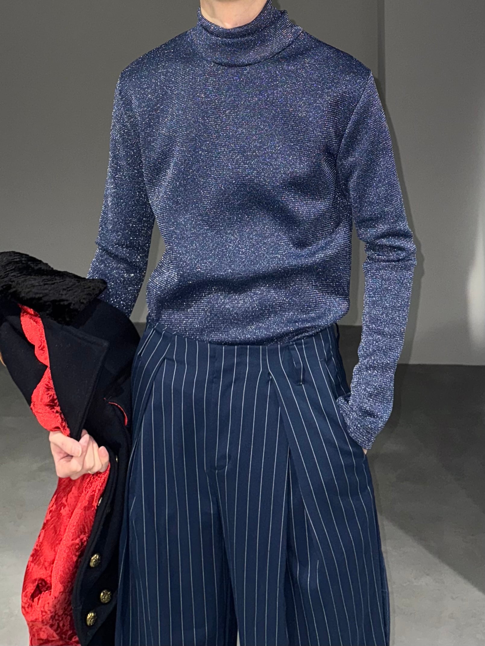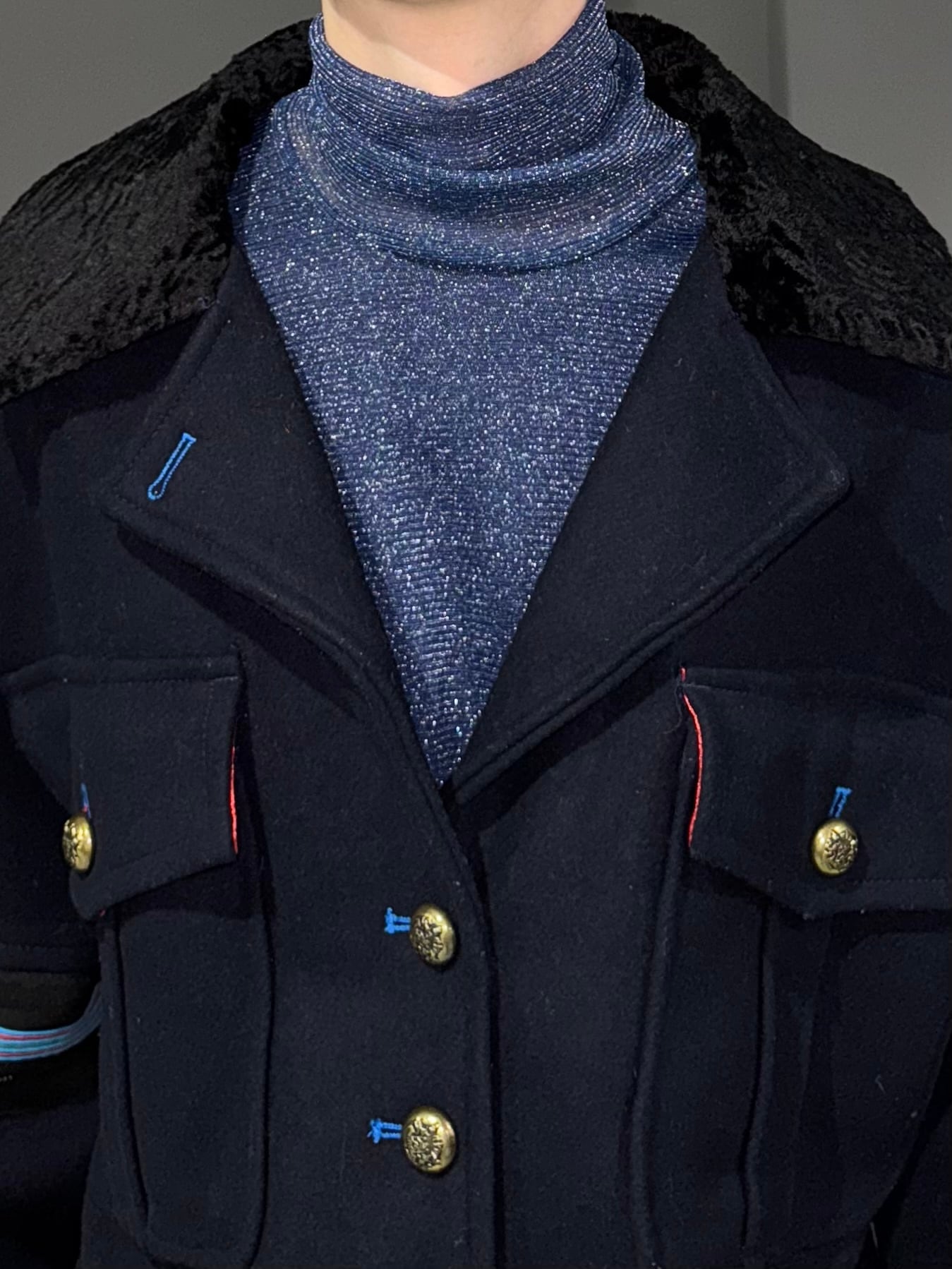 − navy × silver lamé