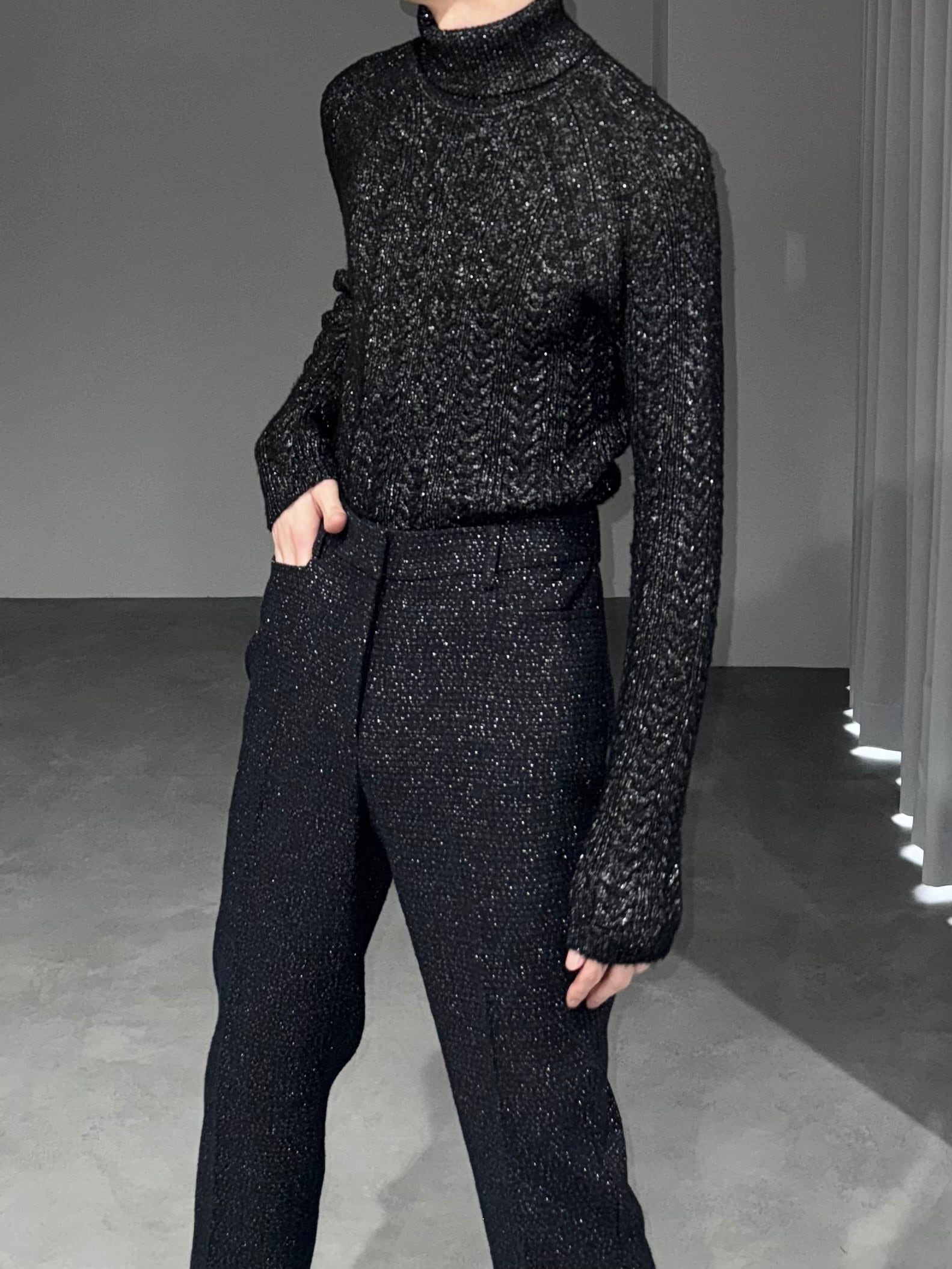 − black × silver lamé