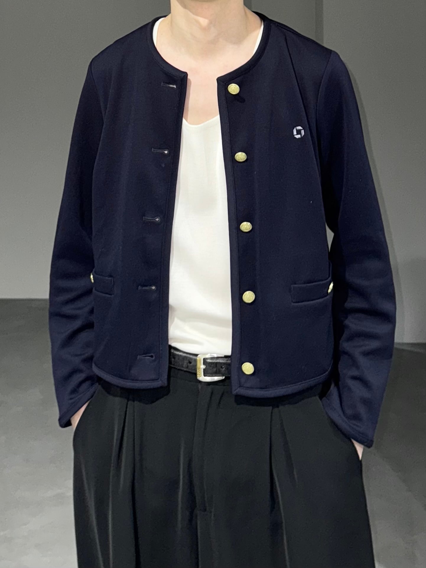 − navy × gold button
