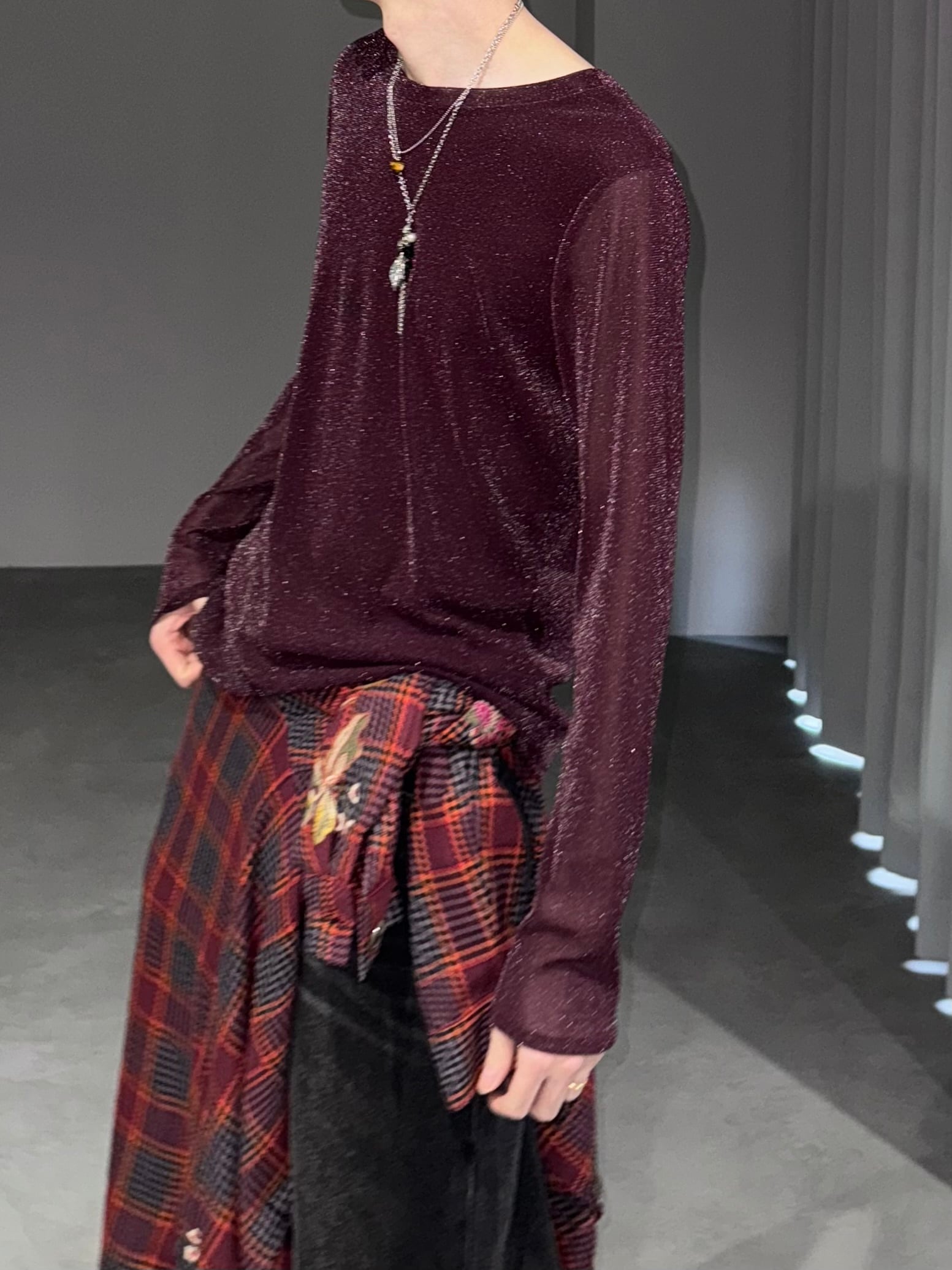 − burgundy × silver lamé